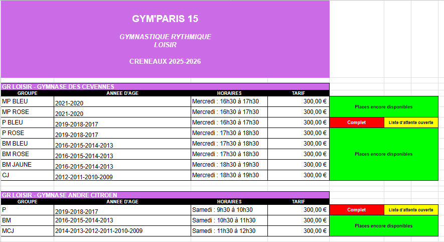 Un seul entrainement d’1h30 ou 2h par semaine au gymnase Falguière ou Gymnase Saint-Lambert.