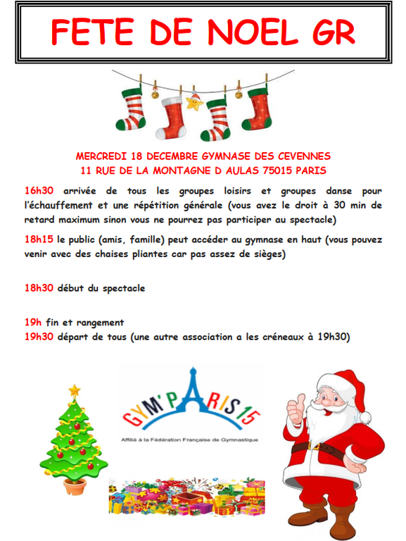 FETE DE NOEL GR LE MERCREDI 18 DECEMBRE DE 16H30 A 18H30